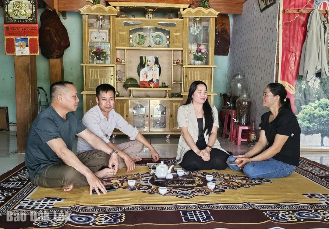 | Trưởng Phòng Lao động – Thương binh và Xã hội huyện Krông Bông Hà Thị Huyền (thứ hai từ phải qua) thăm hỏi gia đình có người thân đi xuất khẩu lao động. |